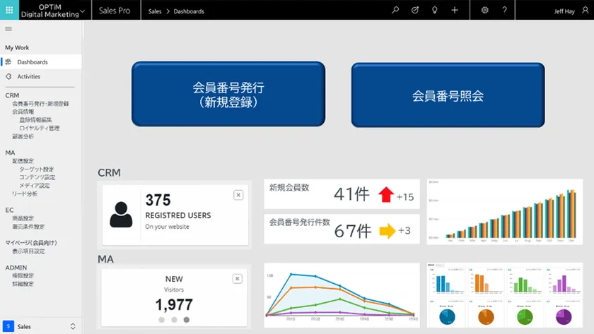 「OPTiM Digital Marketing」CRMトップページ(ダッシュボード)画面イメージ