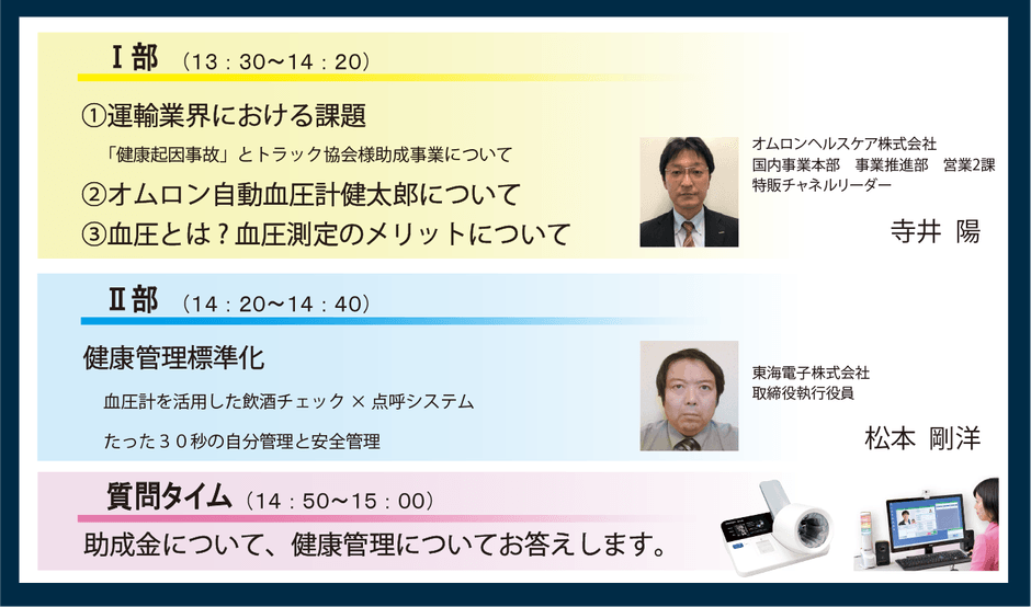 オムロン&東海電子合同セミナー「自分管理は安全管理。血圧測定×飲酒チェック 安全機器で助成金申請を!」