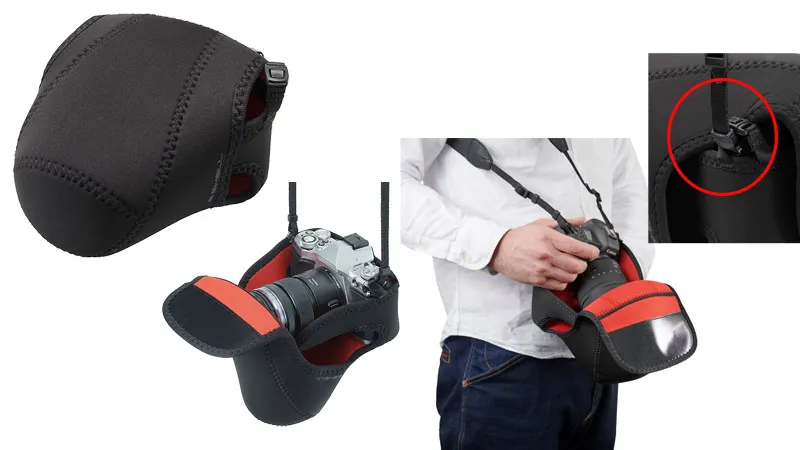 ストラップをストラップホールドに通しておけば、カメラジャケットをストラップに繋げたまま、すぐに撮影、収納が可能です。