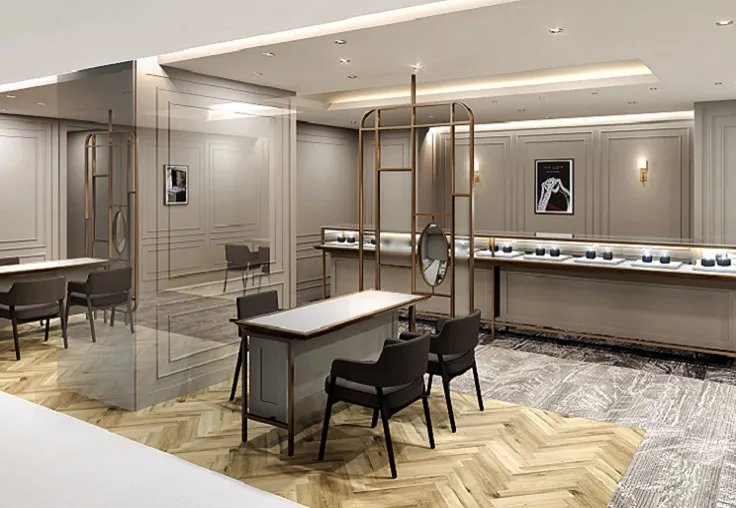 「ラザール ダイヤモンド ブティック」は、ニューヨークのダイヤモンドカッティングブランドであるラザール・キャプラン社と販売店契約を結び「ラザール ダイヤモンド」を扱う専門店として、当社が大都市を中心に16店舗運営しています。新店舗には「ラザール ダイヤモンド」が誇る「伝統」「品質」「信頼」と、現代的な感覚や時代の流行が程よくミックスされたコンテンポラリーな新デザインを採用。店内奥にはゆったりとしたプライベートブースを設置し、The World’s Most Beautiful Diamond(R)”世界で最も美しいダイヤモンド“をゆっくりご覧いただけるほか、気軽に商品をご覧になりたいお客様のニーズにも対応し、ストアフロントのデザインも一新いたします。