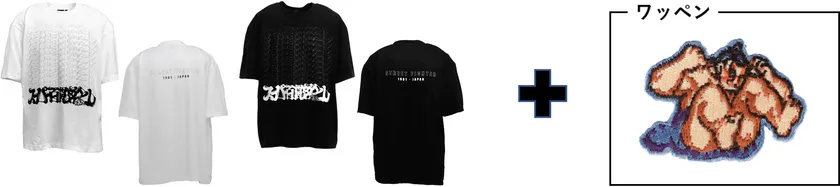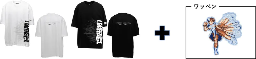 力強く筆文字で描かれた漢字・ひらがな・カタカナ・ローマ字の必殺技名のグラフィックデザインを「TECHNIQUE SERIES」としてシリーズ化し、今後も続々登場予定の『ストリートファイター』のコラボ商品の第一弾。ビックシルエットのTシャツに大きめにプリントされた必殺技名が映える必殺技(Special Moves)Tシャツと2way刺繍ワッペン(熱粘着可能のステッカー)のセット商品です。