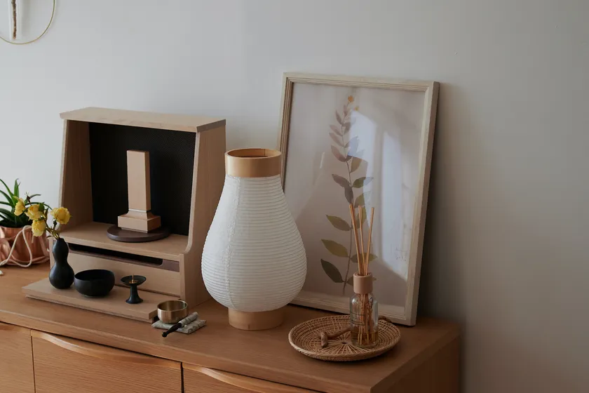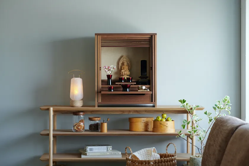 お仏壇としての飾り方や様式、宗教に捕らわれず、ただ手を合わせて、縁を感じる空間と時間を暮らしの中に持っていて欲しい、そんな願いを込めて誕生しました。