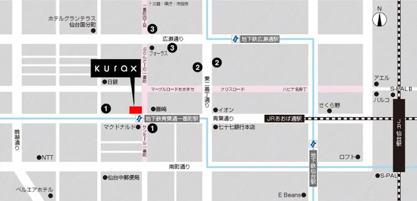 東西線「青葉通一番町駅」(北1番出口)から徒歩1分