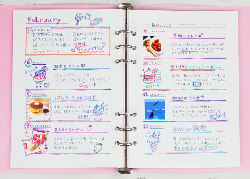 1本で3役、プチかわイラストが描ける2色線ペン「twiink」 簡単!同時2色描きで、手帳やノートがグッと映える仕上がりに