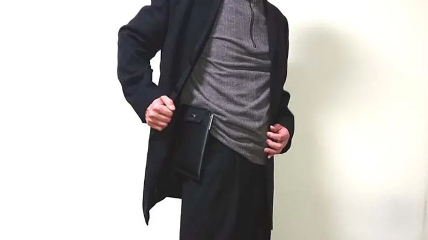 よりアクティブな方はストラップを外してベルトに固定。ジャケットの裾にすっぽりと隠せます。