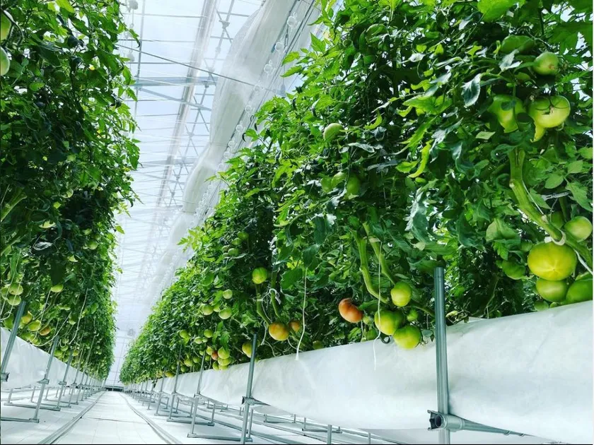 トマトにとって最適な環境を整えるため、温度や湿度、二酸化炭素(CO2)量のほか、根に送り込む水や養液を高精度に制御し、光合成を促進します。