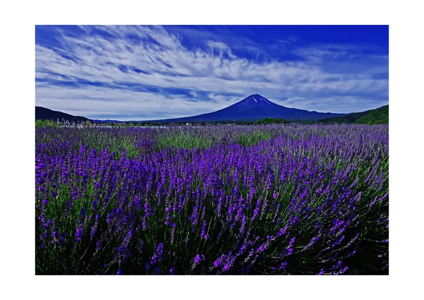 昼は富士とラベンダーの爽やかで美しい景色を