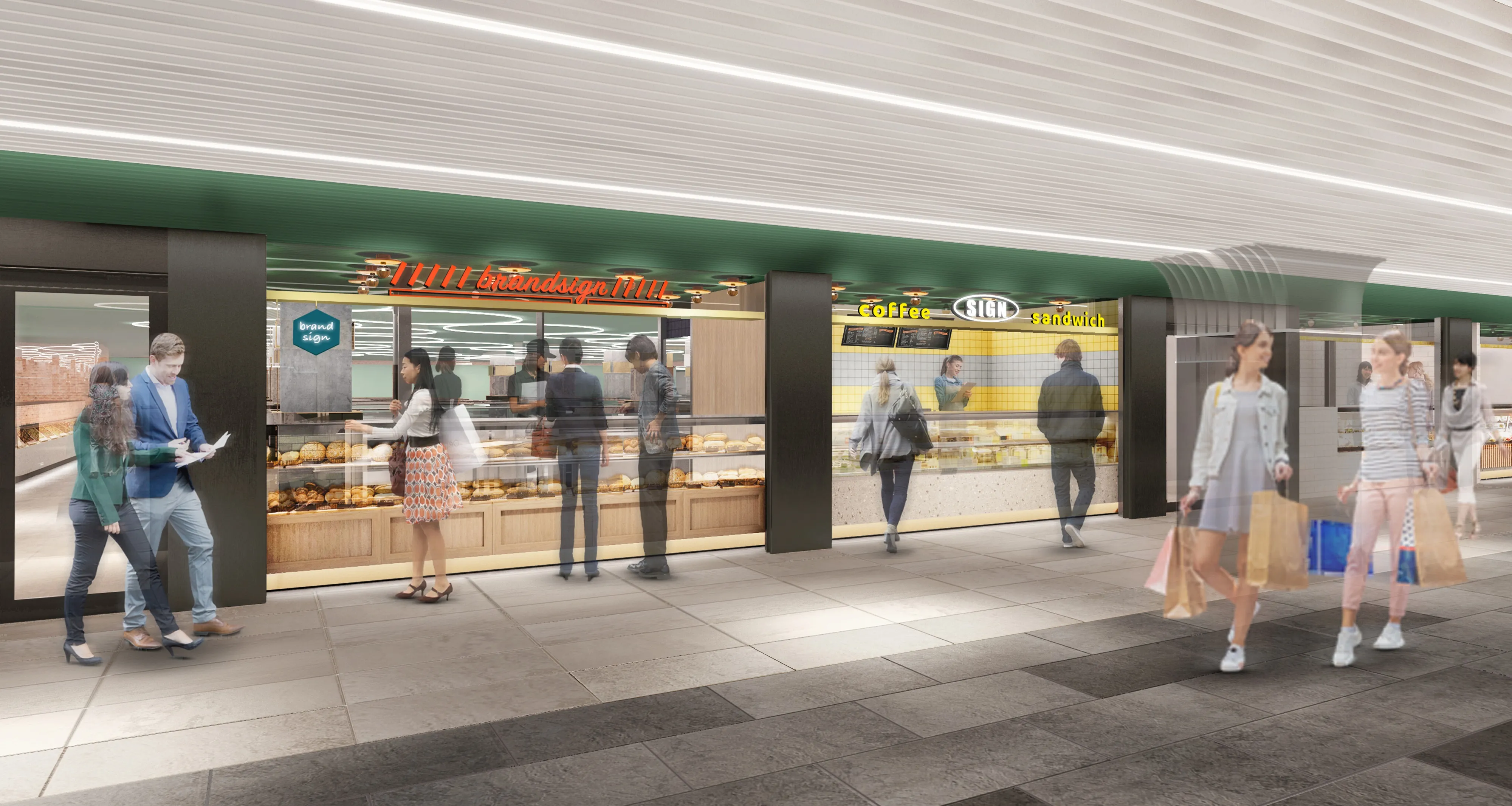 「ここがわたしの毎日を満たしてくれる Another scramble(アナザー スクランブル)」をコンセプトとし、同じく2021年7月にリニューアルオープンする「しぶちか」に、地下通路を利用される方の毎日の食を支えるデリゾーンを展開します。地下通路に面したショップを、通路側から利用できる「外向き区画」とし、ヘルシーで新しい地中海・アラビア料理のテイクアウトに自社醸造のクラフトビールを気軽に飲めるタップスタンド&イートインを備えた<CARVAAN Delicatessen & Beer stop>や、焼き立てフィナンシェなどを提供するピエール・エルメの初のスタンド式店舗<MADE in ピエール・エルメ>など、いそがしい渋谷のオフィスワーカーが気軽に利用できる7ショップを集めました。フカヒレ料理と鶏白湯を2本柱とする自由が丘の名店 <蔭山樓> のテイクアウト&イートイン店など中華・アジアの名店が連なるスペースはアジア屋台風のエキゾチックな雰囲気が味わえます。そのほか新進気鋭のオーナーが運営し、南青山の近隣住民からも愛されるビストロが人気のミートパイやシャルキュトリーを中心に販売する新業態<DELI by plein>などさまざまなショップを取り揃えました。