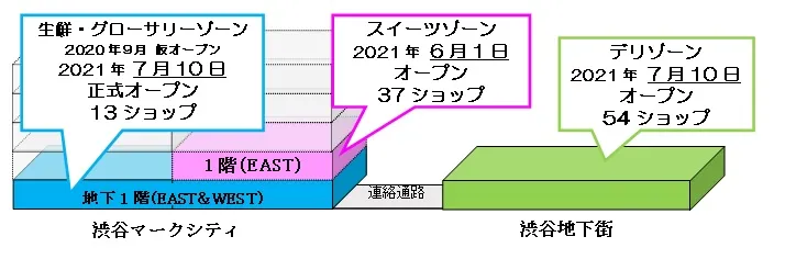 株式会社東急百貨店(以下、当社)は、渋谷 東急フードショー(以下、当店)の「スイーツゾーン」(渋谷マークシティ1階)を2021年6月1日(火)に、「デリゾーン」(渋谷地下街エリア、以下、しぶちか)を7月10日(土)にオープンします。