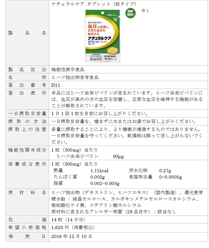 ※1:約700種類の素材について文献調査や試験を行った結果、ヒハツの血圧改善作用を発見し、特許を取得しました。 特許第4797363号
