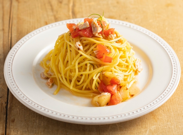 ■桃・ツナ・トマトの冷製パスタ