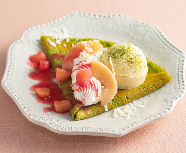 おやいづ抹茶と白桃のクレープ