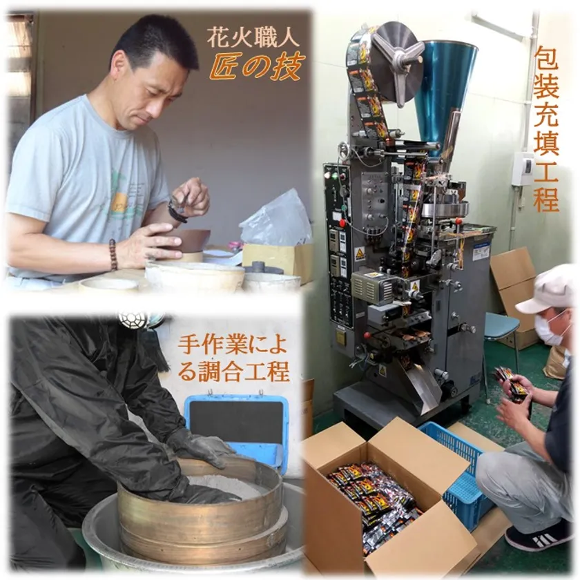 弊社は、2019年2月より発売スタートした中国製品(カラーフレイム)累計販売数50,000個以上、「サプライズで使ってみたところ、大好評でした!」「花火が禁止のキャンプ場で子供が大喜びでした!」など、好評いただいておりましたが、不純物が多い、発色にバラツキがあるなど品質が安定していませんでした。そこで原料からフィルムに至るまで全て国内製造に拘り、滋賀県の花火製造会社 柿木花火工業様と1年以上にわたり共同開発し、「炎神」を製作いたしました。コロナ禍で花火業界も大打撃を受ける中、「炎神」で少しでもお役に立てることが出来ました。