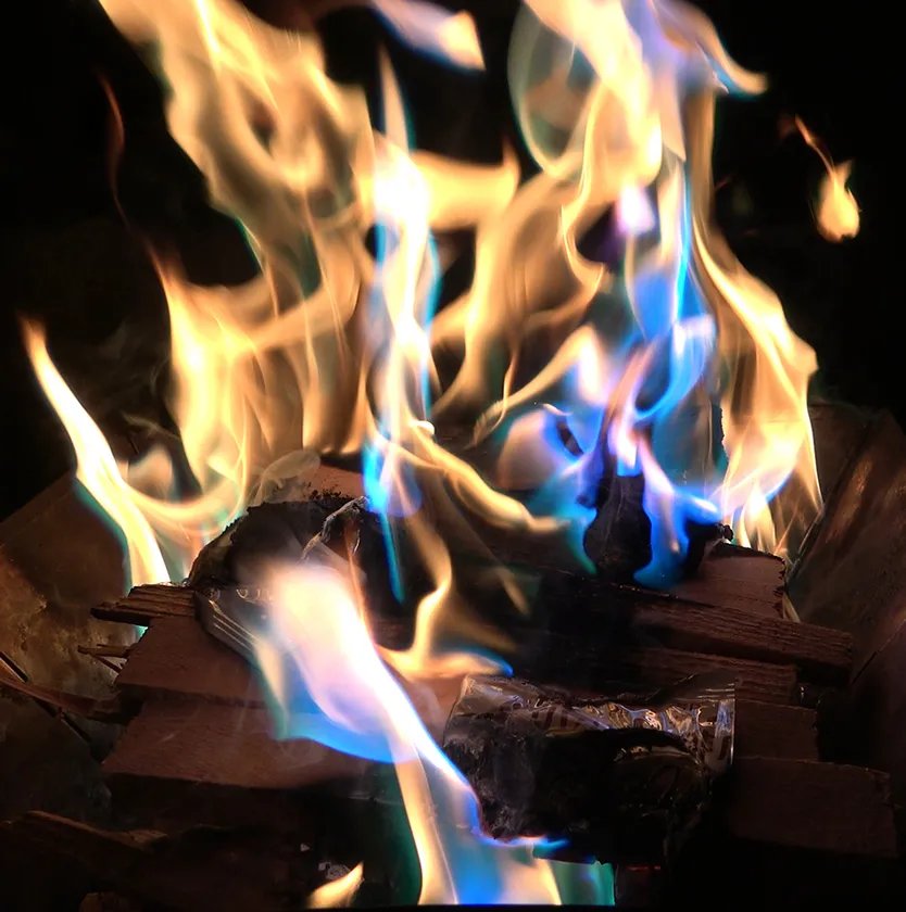 近年、アウトドアブームでキャンプ用品の販売が好調で、コロナ禍でもその勢いは衰えていません。キャンプの楽しみと言えば、バーベキューと焚き火です。夜の定番になるほど焚き火は人気があります。ゆらゆらと揺らめく炎は人の心を癒す効果があります。その炎の色を変えて感動できる焚き火に変える商品が「炎神」です。特定の金属に炎を当て加熱すると、その金属特有の色の炎になる現象(炎色反応)を応用したものとなります。商品を袋のまま焚き火の中に入れるだけ、誰でも簡単に素早く使う事ができます。