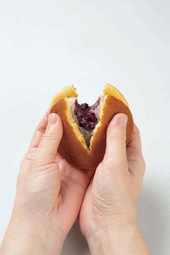 創業明治26年、青木屋の始まりは、万頭の商いでした。お万頭づくりに欠かせない餡を生地で包む「包餡」という技術を使い、極限までやわらかく炊いたベリー餡を大福生地で包みました。100年以上続くお万頭づくりの技と、日々作り続ける、どら焼きをふんわりと焼き上げる経験。伝統的な和菓子の枠を超えて、創作和菓子へと変化させました。