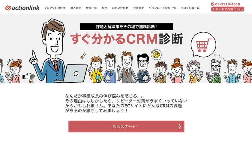その問題を解決するために今回ご提供を開始したのが「すぐ分かるCRM診断」( https://actionlink.jp/crm_simulation/ )です。