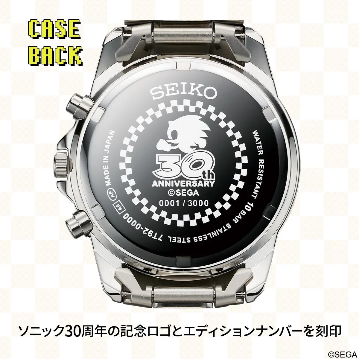 裏蓋にはソニック30周年の記念ロゴと、限定3000点のエディションナンバーが刻印されます。