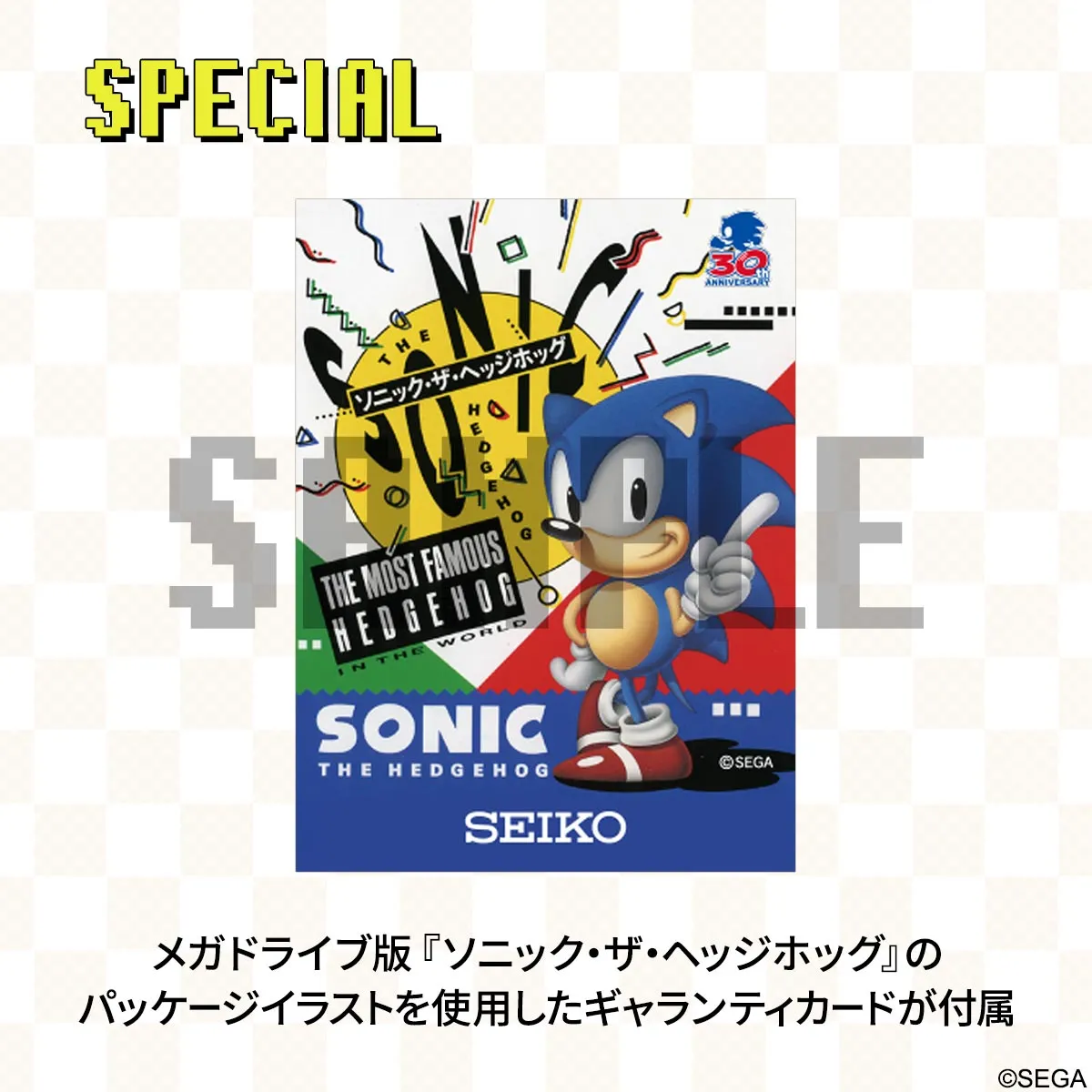 メガドライブ版『ソニック・ザ・ヘッジホッグ』のパッケージイラストを使用したギャランティカードが付属します。