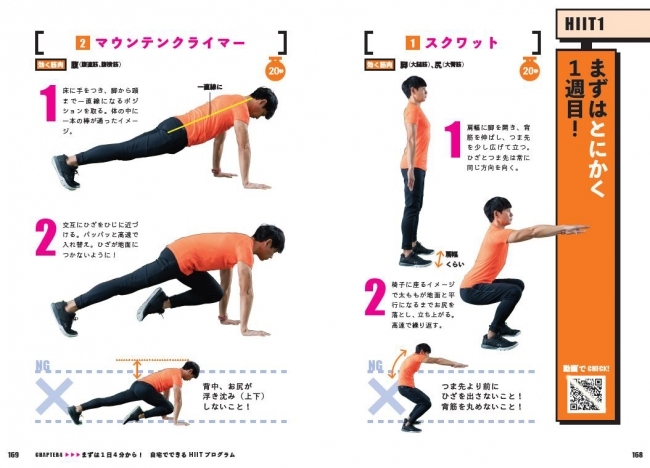 本書にあるQRコードから、福池氏が出演するHIIT動画が見れるので、写真だけではわかりにくいエクササイズもPCやスマートフォンから確認できます。本書では、夢のような運動方法HIITの効果・効能、やり方を詳しく紹介しています。ぜひチャレンジしてみてください。