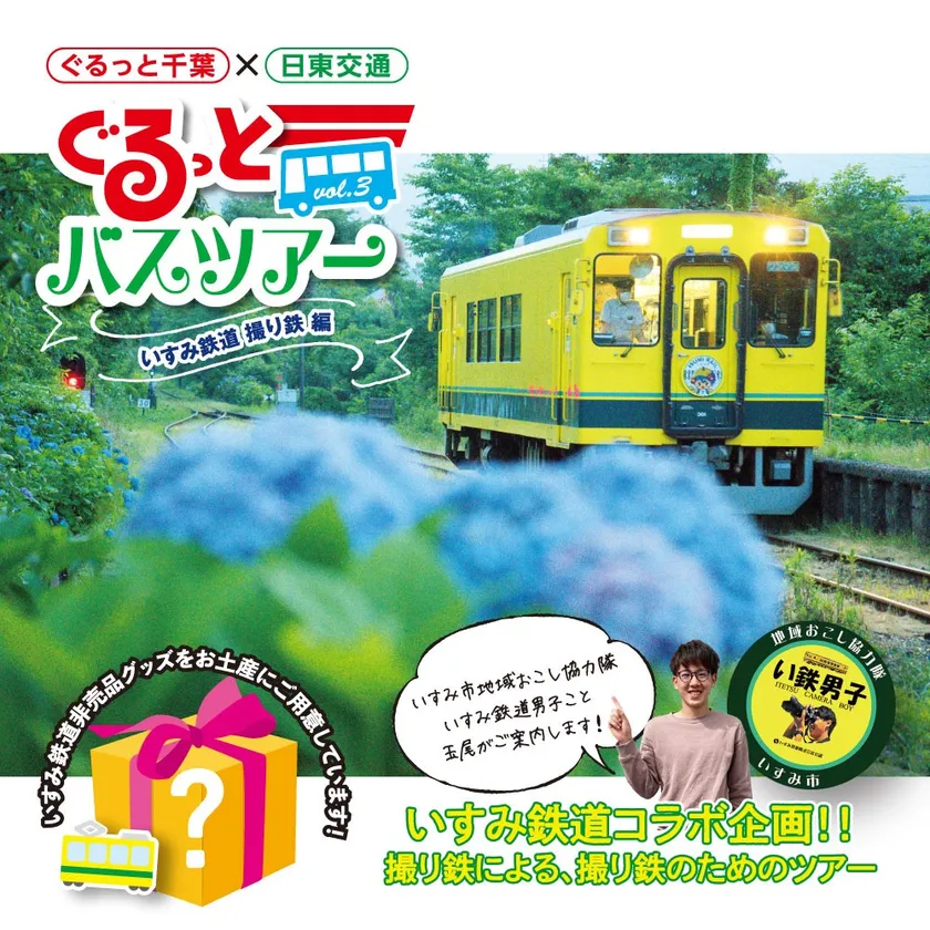 日東交通株式会社・有限会社ちばマガジンは、いすみ鉄道とのコラボとして特別に許可を得た場所で、「いすみ鉄道男子」玉尾さんオススメの紫陽花にいすみ鉄道の黄色い列車が映えるこの季節ならではのショットを撮ることができる「ぐるっとバスツアー vol.3 いすみ鉄道 撮り鉄編」を開催いたします。