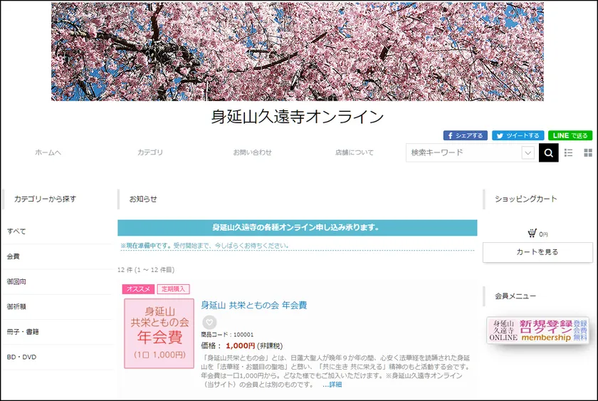 ほか「身延山共栄ともの会」年会費支払い、書籍・DVDなどの購入もできます。