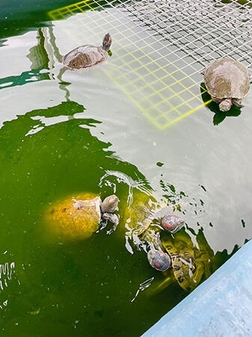 海洋ごみの被害を受けたウミガメが保護されている様子を見て、神野さんは「これまではマイクロプラスチックが多いと言われても、大して実感が持てませんでした。しかし、ここのウミガメを見て、ごみは自分たちが思っている以上に生態系に影響を及ぼしているのだと気付かされました。この活動以降は、少しでも海洋ごみを減らすために清掃活動に積極的に参加したいと考えるようになりました」と語ります。