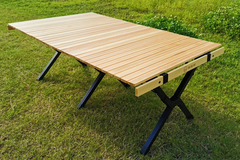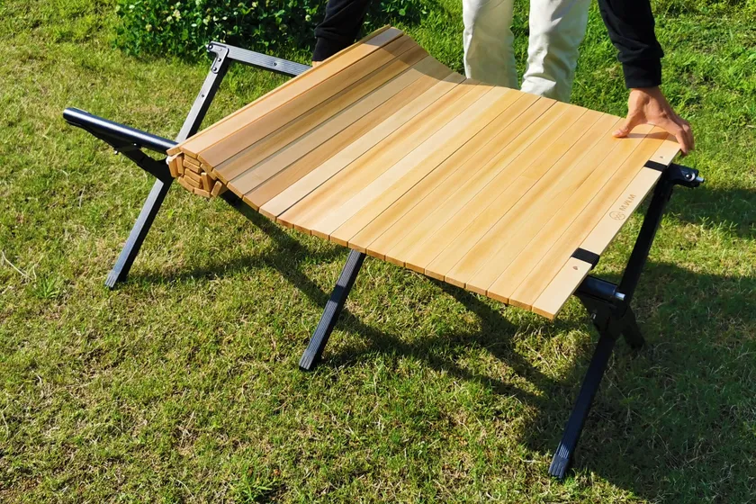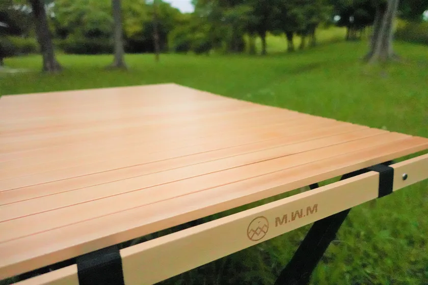温かみのある天然木を使った美しい木目のテーブルトップがワンランク上のアウトドアスタイルを演出します。