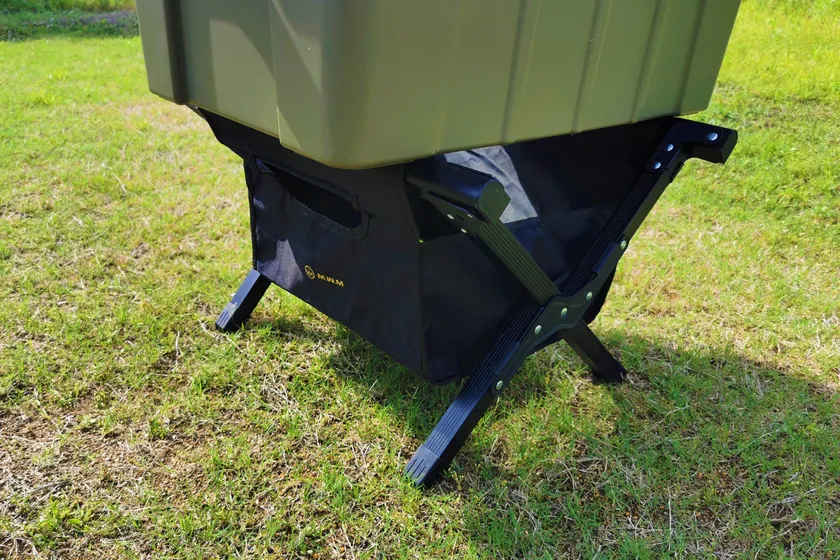 折り畳み式のフレームは1.65kgと軽く、耐荷重は100kgと丈夫なアルミニウム合金。ブラックカラーがどんなクーラーボックスにもマッチします。