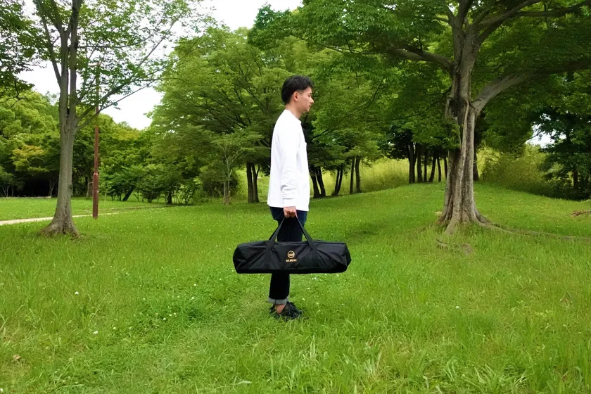 天板、フレームともに付属の収納袋にコンパクトに収納できるので、どうしても荷物が多くなるファミリーキャンプで活躍します。