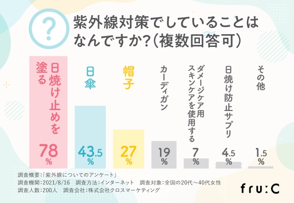 そのほか「日傘」「帽子」と、紫外線を受けるタイミングで対策を行っている方が多いといった結果になりました。