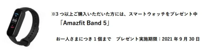 ※3つ以上ご購入いただいた方には、スマートウォッチ「Amazfit Band 5」をプレゼント中