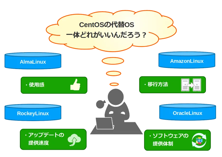 『CentOS』が終了した背景には、企業の意向が強く影響していると言われているため、『CentOS』からの乗り換えOSには、コミュニティベースであることが重要視されています。