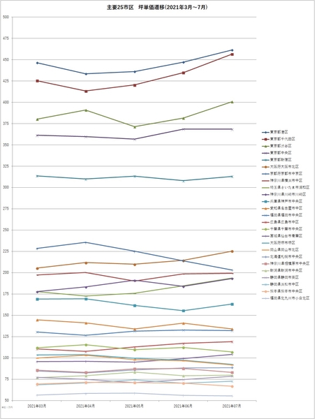 ■主要25市区 坪単価遷移(2021年3月~7月)
