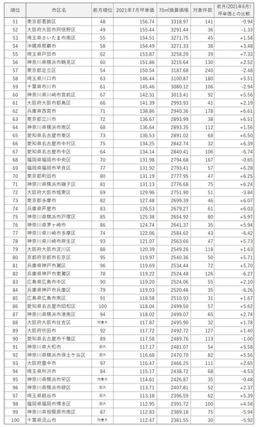 2021年7月の対象件数が30件以上ある全国198市区よりランキングを算出。
