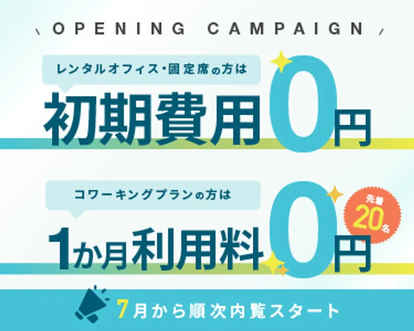 オープン記念「初期費用0円」&「1か月利用料0円」キャンペーンを実施