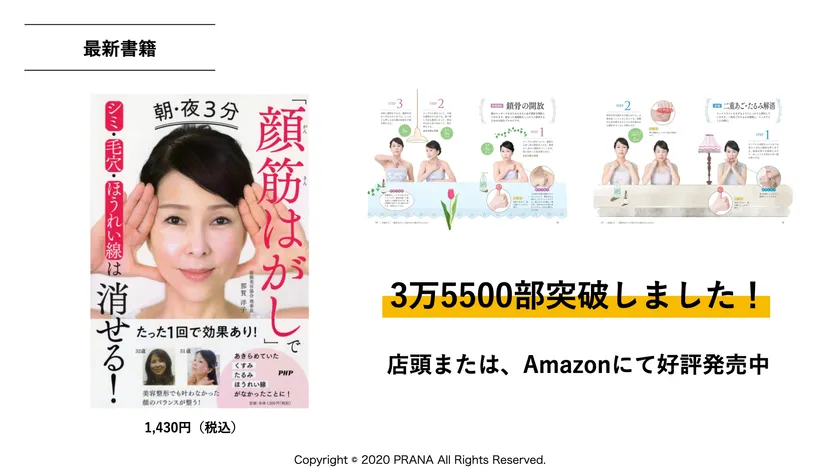 大分県出身。肌の自己回復力を取り戻す「顔筋ひっぺがしメソッド」を独自に開発、実践。みるみる肌がきれいになることを実感し、メソッドを伝えるために、2009年、大分にサロンを開業しました。現在、大分と東京にサロンを開設。「真の美と健康」を伝えるため、各地での講演会をはじめ、テレビや雑誌などで活躍。著書に「マイナス15歳肌をつくる顔筋ひっぺがしメソッド」(あさ出版)・朝・夜3分「顔筋はがし」でシミ・毛穴・ほうれい線は消せる!(PHP)・日めくり1日1分「顔筋はがし」でシミ・毛穴・ほうれい線は消せる!があります。中でも、日めくり1日1分「顔筋はがし」でシミ・毛穴・ほうれい線は消せる!は現在、発行部数3万5,500部を突破しています。