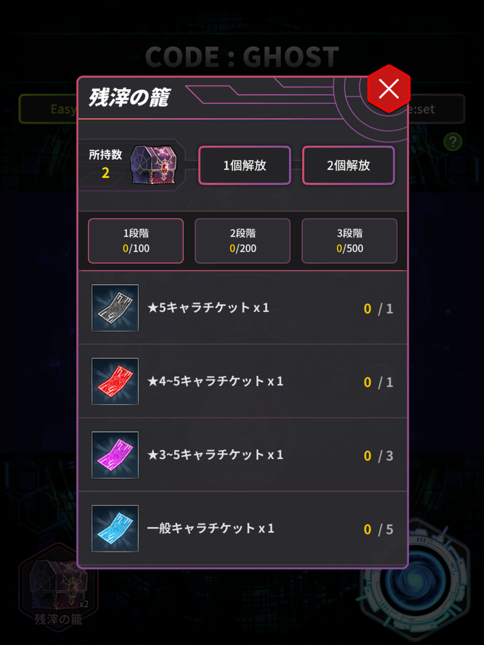 獲得した残滓の箱からは、様々なアイテムを獲得でき、中にはお得なアイテムがいっぱい!ステージをどんどんクリアして、多くのアイテムを獲得しましょう!