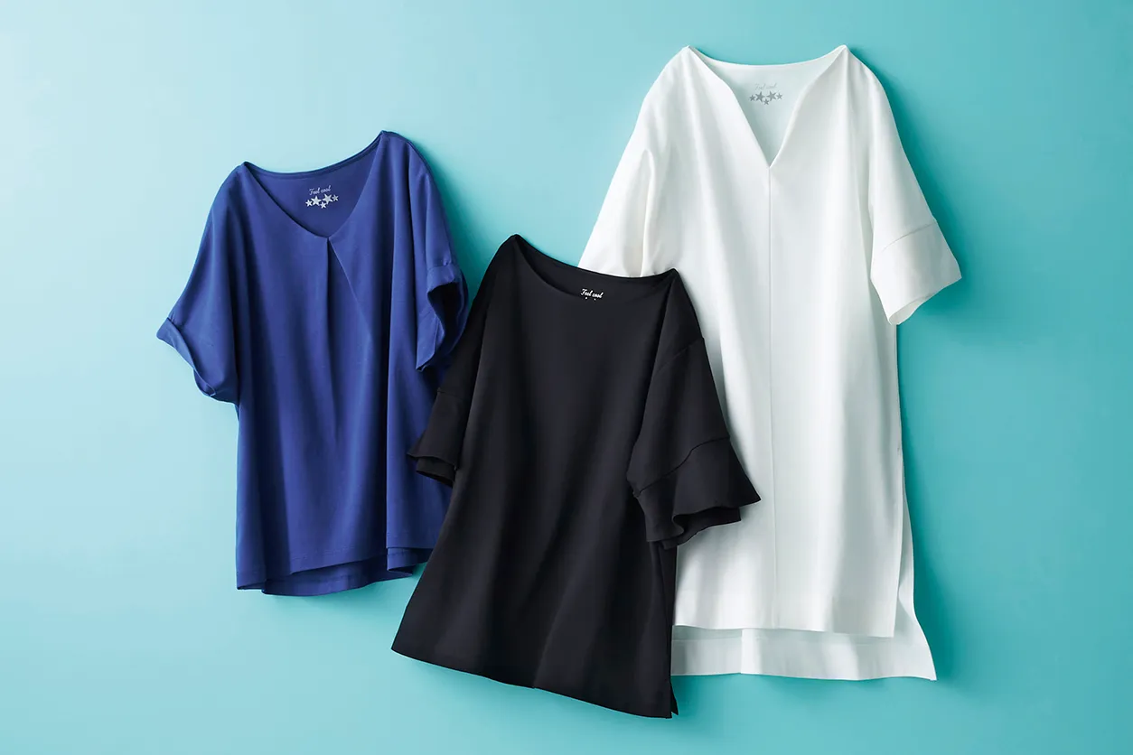 ベルメゾン 生地温度が8℃も下がる! 汗をかいてもひんやり涼しい「吸湿冷感カットソー」 6月2日より発売開始