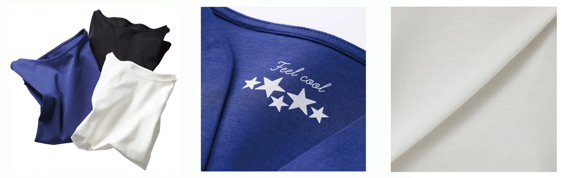 年々上昇する夏の気温と連日の猛暑で、「夏は過ごしにくく、ツラい季節」という印象が強くなっています。そんな夏に「洋服を着るだけで涼しく快適にすることできないか?」「おしゃれをすることで心も身体も快適にできないか?」という思いから「吸湿冷感カットソー」が開発されました。