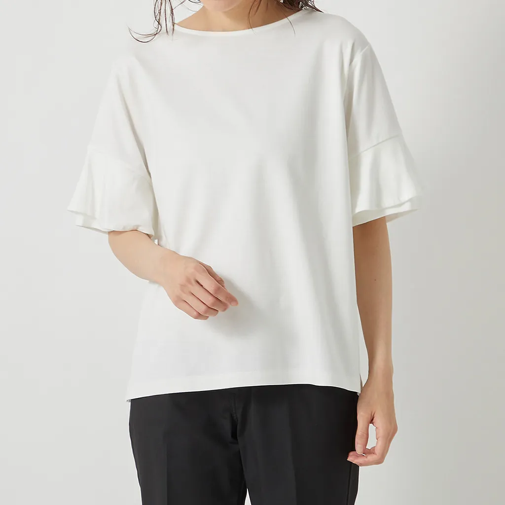 商品名:綿100%袖フレアカットソー【吸湿冷感】