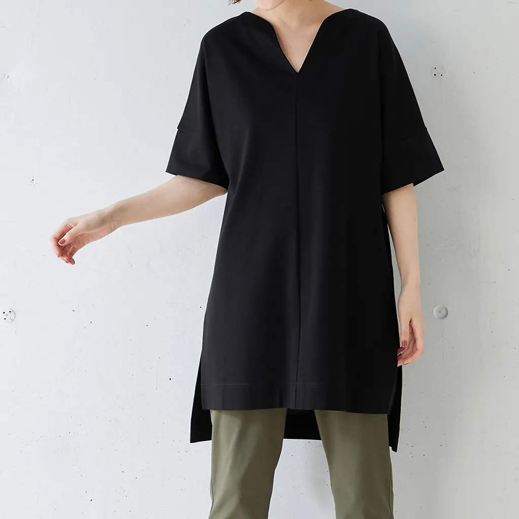 商品名:綿100%Vネックカットソー【吸湿冷感】
