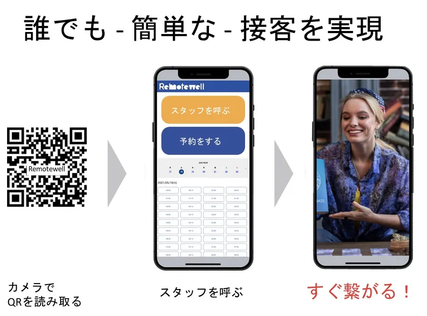 当サービスはアプリ・会員登録を不要で利用者とつながることができる「remotewell」を活用し、サービスを実現しております。