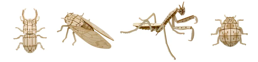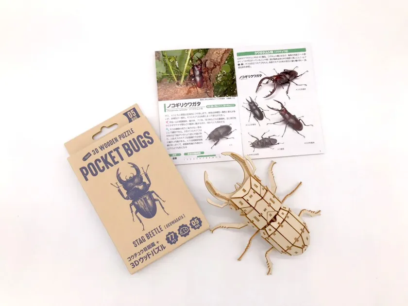 本シリーズの新しい試みとして、虫と触れ合う機会が少なくなった今だからこそ、「虫のおもしろさ」を知って、興味を持ってもらいたいという思いから、昨年12月に図鑑付き3Dウッドパズル「ポケットバグズ」が誕生しました。