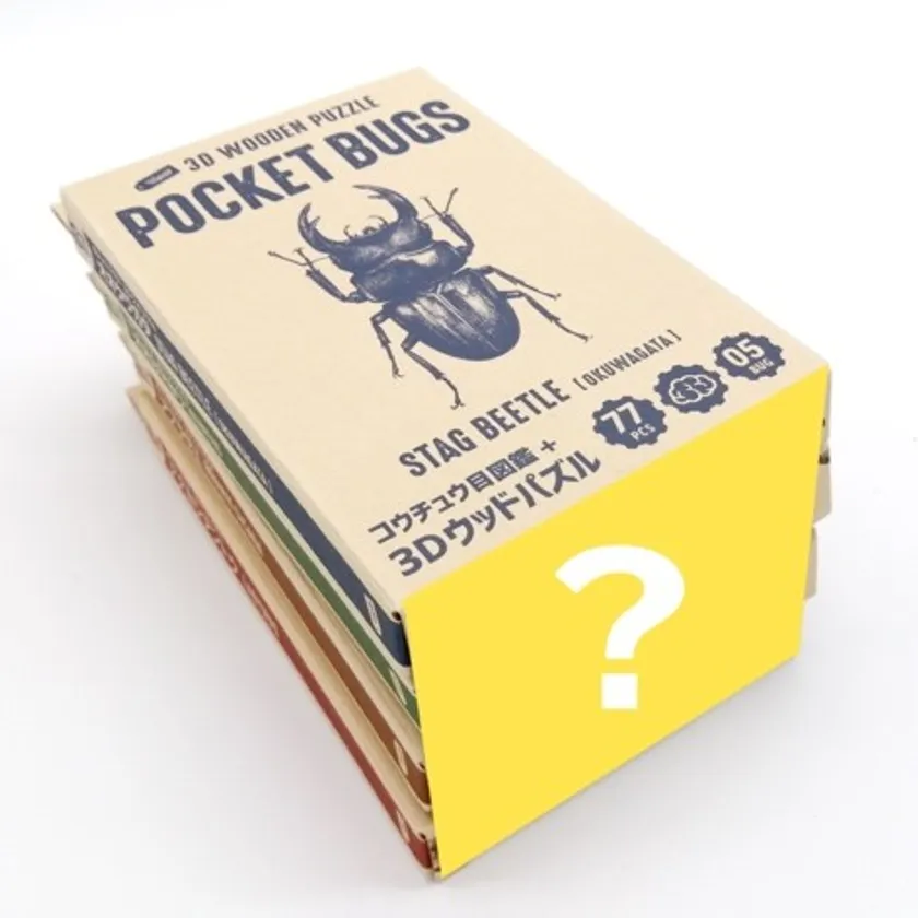 ポケットバグズは、3Dウッドパズルにポケットサイズで16ページの図鑑が付いたシリーズです。第2弾のシリーズはオオクワガタ、アブラゼミ、オオカマキリ、ナナホシテントウの4種類となります。木材の温かみを感じていただき、パズルを組み立てることで集中力を養うことにも効果的です。