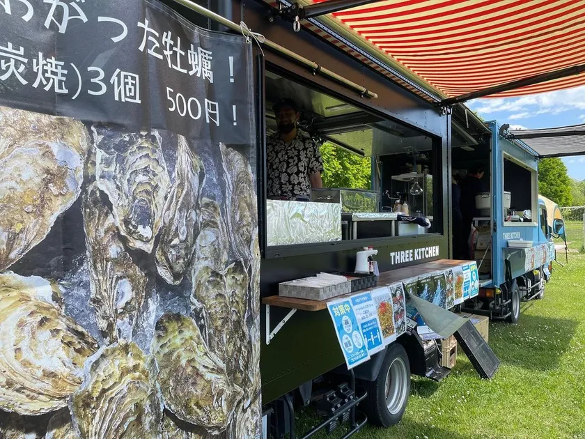 キッチンカーの折りたたみ受け渡し台(Instagram kitchencar_takashi_three様)