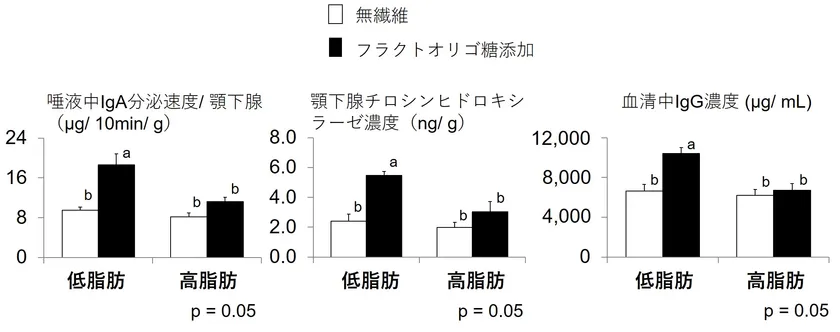英文タイトル:Effect of High Fat and Fructo-Oligosaccharide Consumption on Immunoglobulin A in Saliva and Salivary Glands in Rats