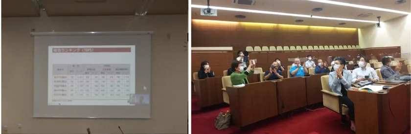 全体ランキング第1位が発表された瞬間 喜びがあふれる市議と市議会事務局職員