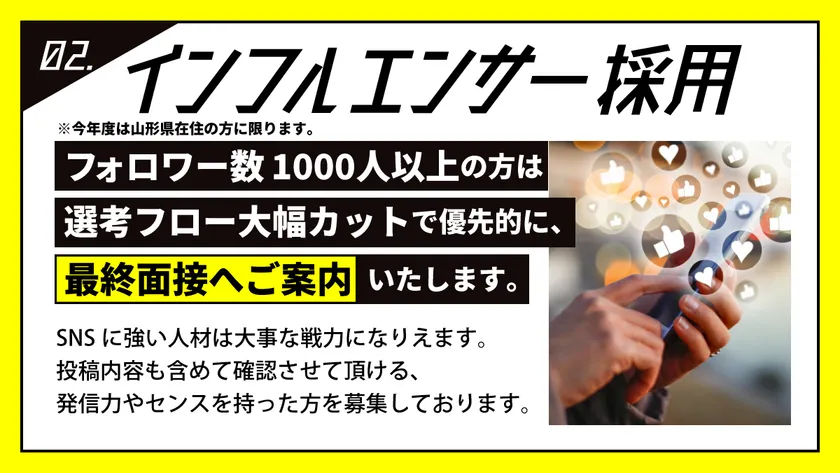 初めての企画となるため、山形県在住かつ、Twitter、Instagramのどちらかのフォロワー数が1,000人以上の方を対象としております。