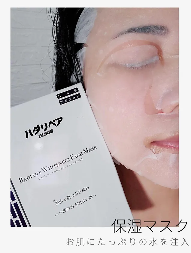 また、ベニバナエキスとリン酸L-アスコルビルマグネシウムも含まれており、メラニン色素を抑え白氷姫のような白い肌へ導いてくれます。この「ハダリペア白氷姫レイディアントホワイトニングフェイスマスク」ひとつで保湿、抗炎症、ニキビ対策、抗酸化、さらにメラニン色素の生成を抑え、シミ・そばかすも防いでくれる!まさに忙しい現代人に送るお肌の救世主です。