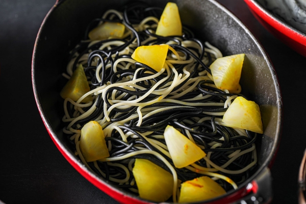 担々麵(タントミール)/イカ墨のブラックカレー(ランチタイムのみ/カッサンドラ&タンブルブルータス)/鮮魚の握り寿司(ディナータイムのみ/美食家バストファージョーンズの愛した逸品)/地場野菜の揚げたて天ぷら(美食家バストファージョーンズの愛した逸品)/ハンバーガー(ゴミ捨て場のゴミ箱)/チーズボール(ボンバルリーナ)